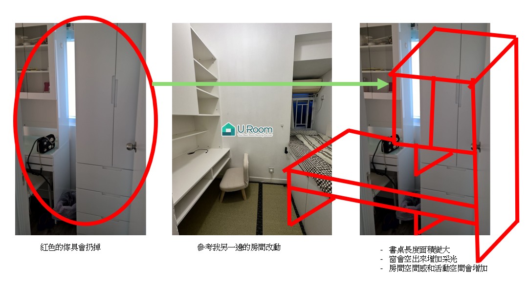 - 房間的原來衣櫃和書桌將會扔掉.
