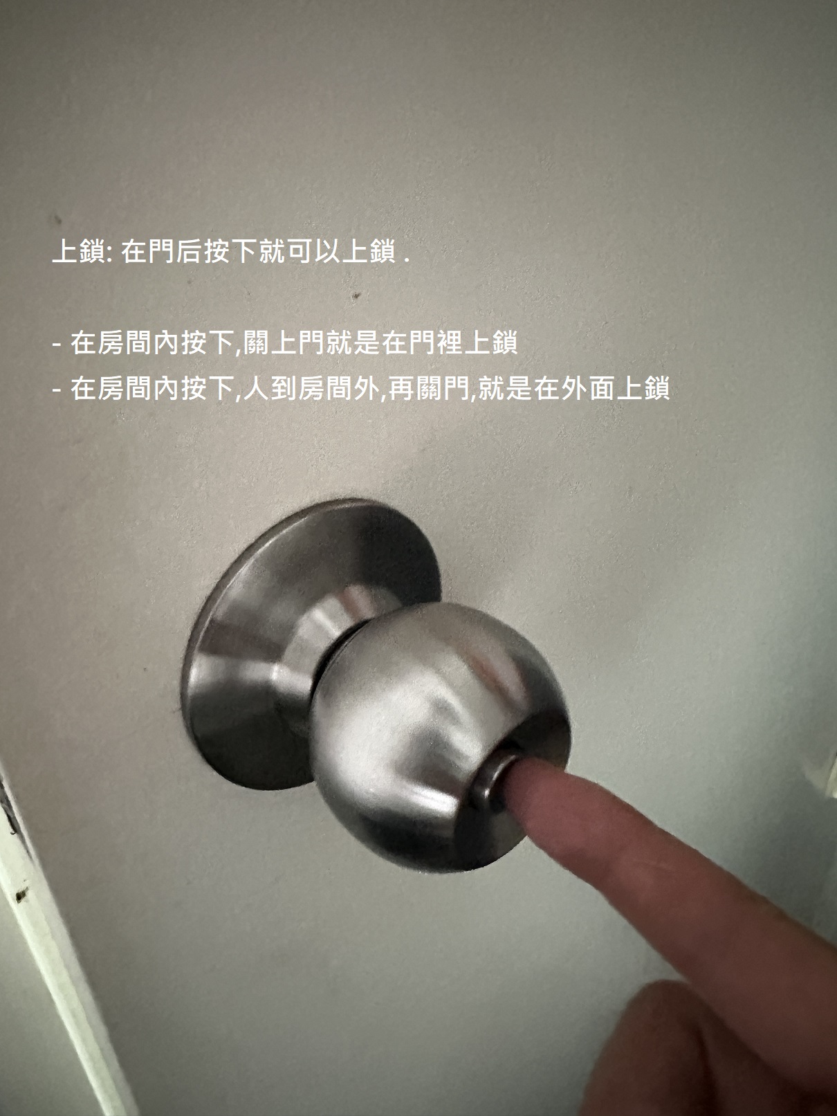 - 在房間內按下,關上門就是在門裡上鎖